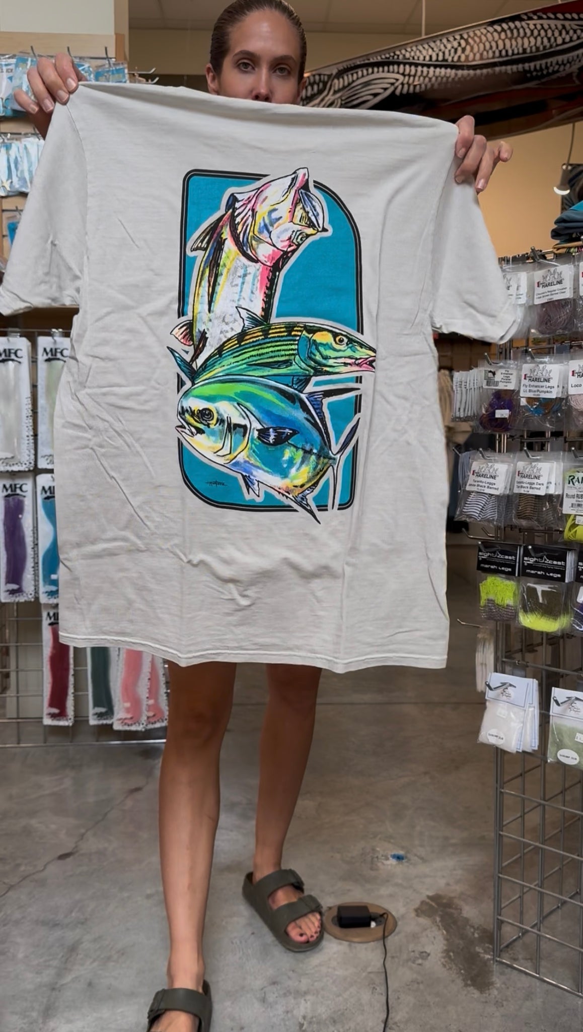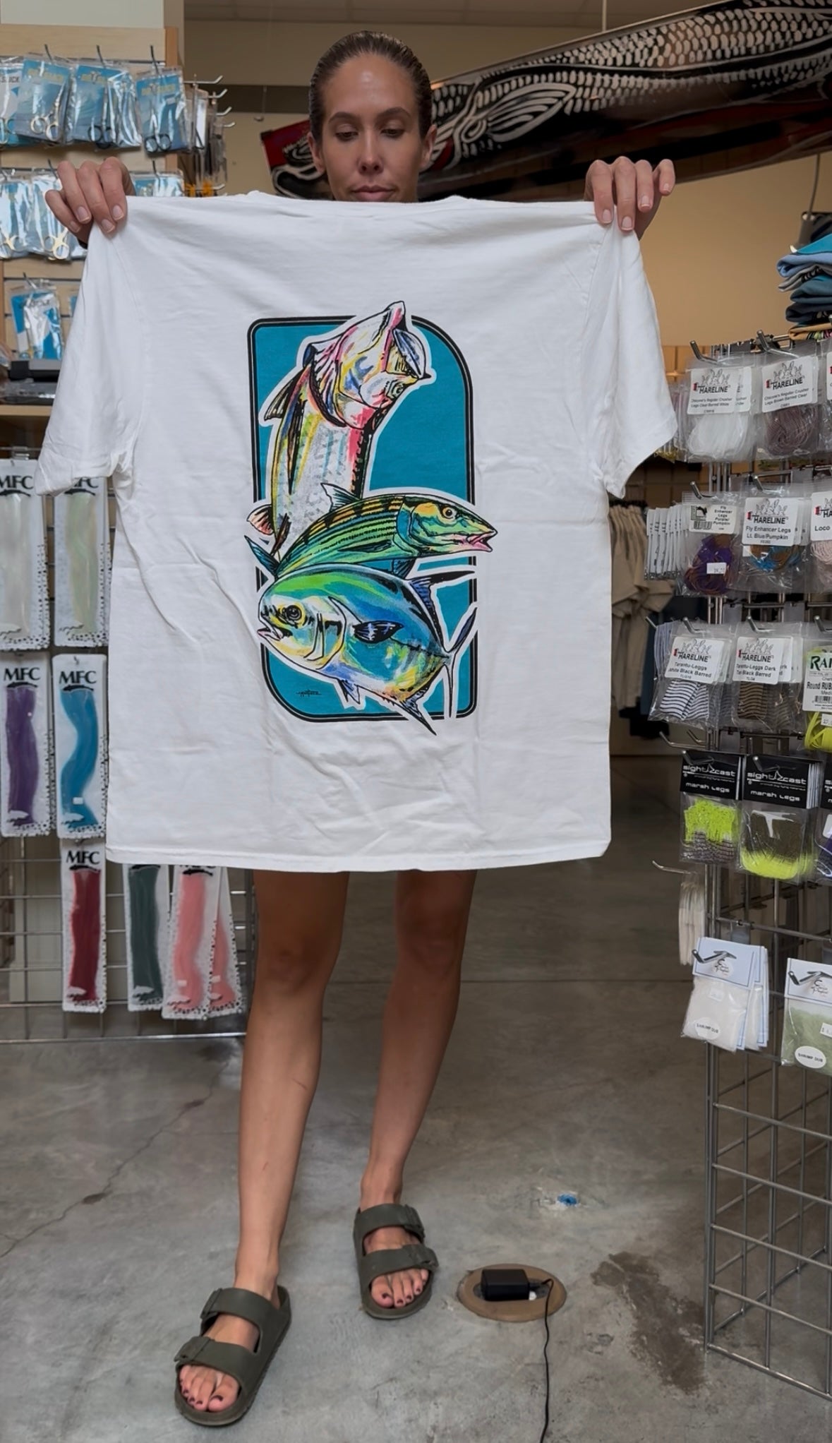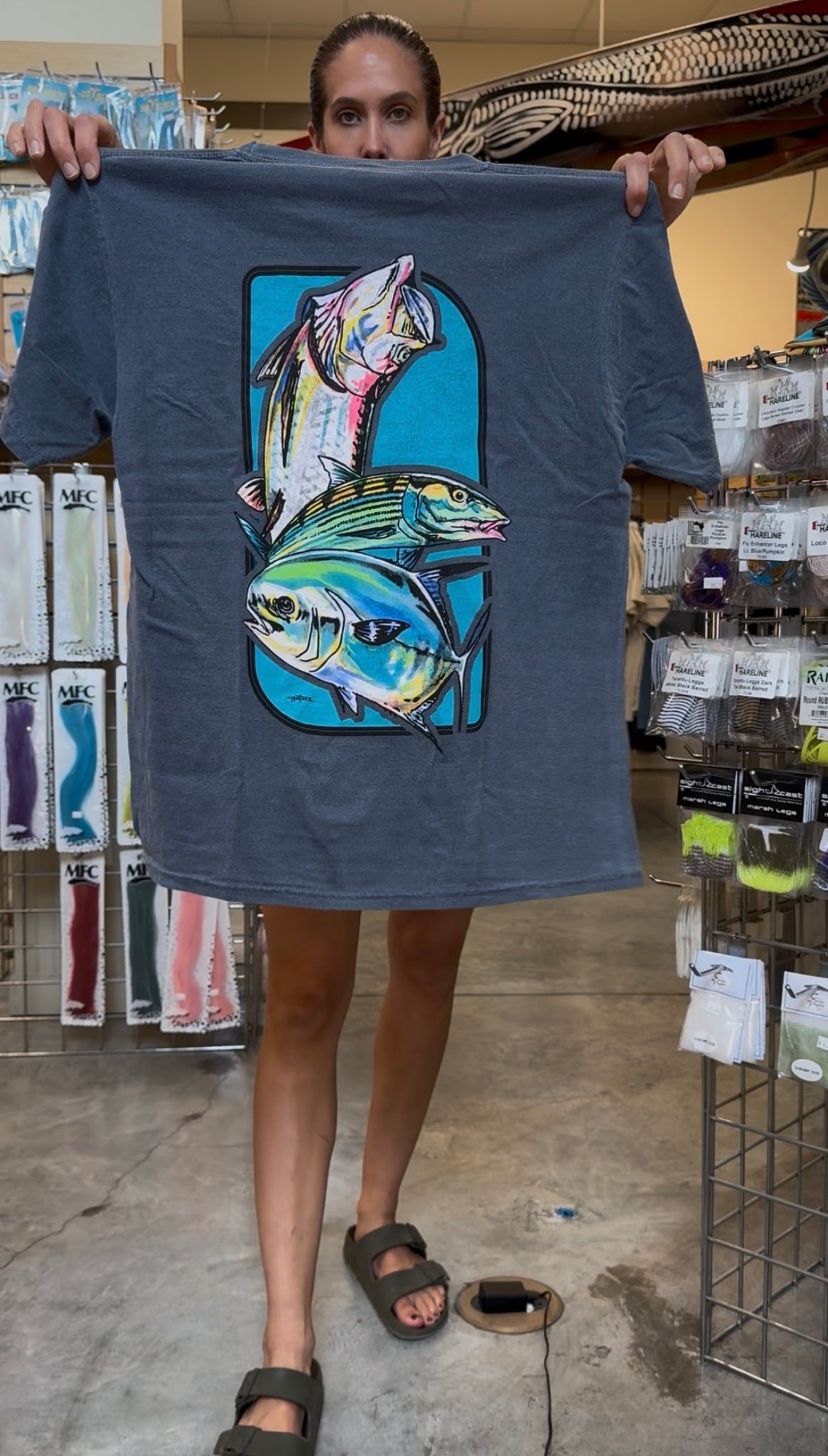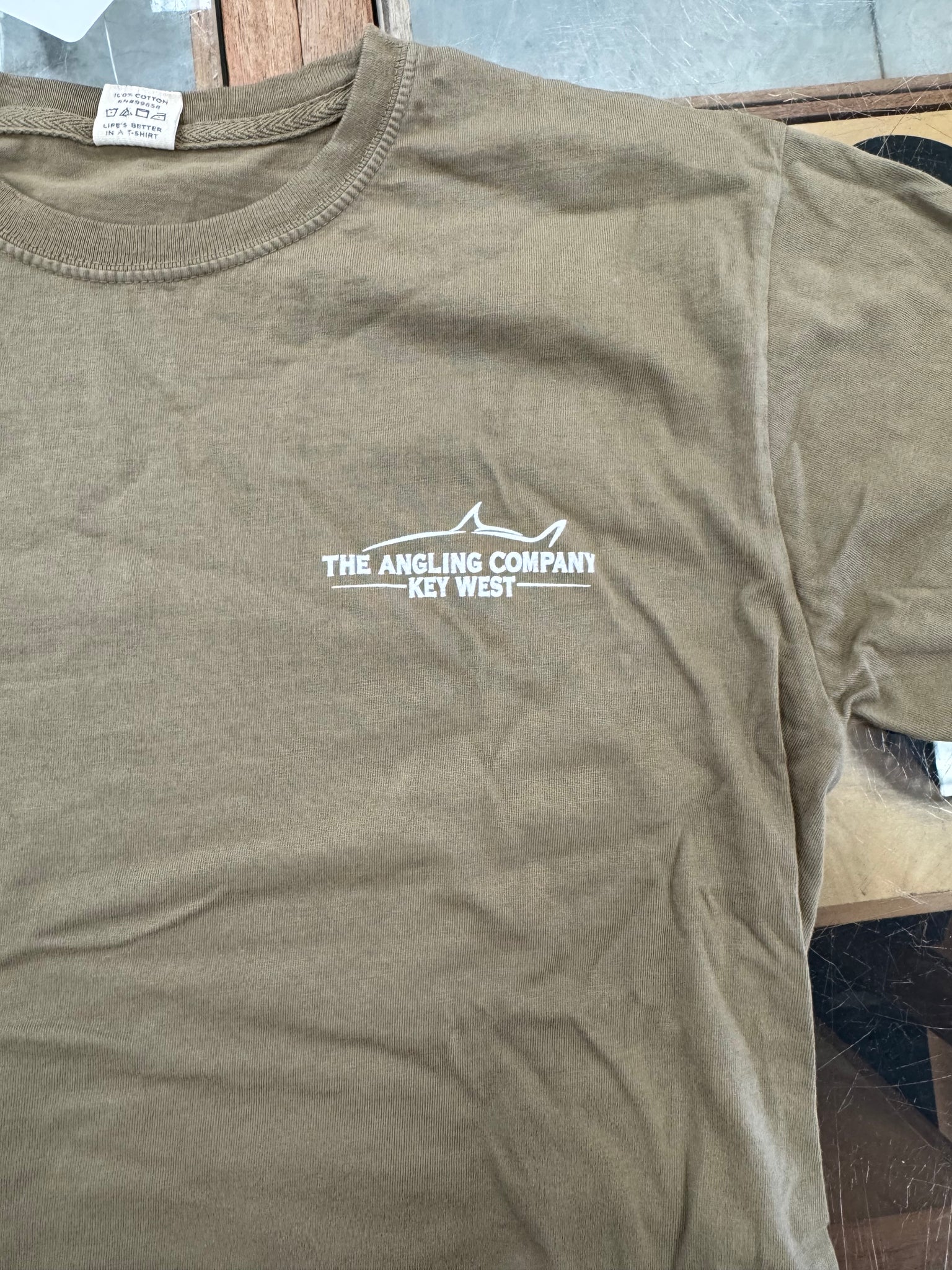 Pre-shrunk ringspun cotton t-shirts featuring Grand Slam Art by South Florida artist, Jorge Martinez. Features the Angling Company Logo on the front of the shirt.